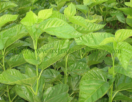 Descripción: La morera es una planta perenne de hoja caduca de rápido crecimiento. Tiene un sistema de raíces profundo. Las hojas son simples, alternas, estipuladas, petioladas, enteras o lobuladas.El número de lóbulos varía de uno a cincoLas plantas son generalmente dioecas. La inflorescencia es de catkin con pedúnculos colgantes o caídos con flores unisexuales. La inflorescencia es siempre auxiliar.Los machos suelen ser más largos que las hembras.Las flores masculinas están dispuestas libremente y después de verter el polen, la inflorescencia se seca y se cae.La inflorescencia femenina suele ser corta y las flores están muy compactamente dispuestas. Hay cuatro lóbulos pariánticos persistentes. El ovario es unicelular y el estigma es bífido. El principal agente polinizador en la morera es el viento..Función: La hoja de morera es considerada como una hierba agradable en la antigua China para la antiinflamación, el antienvejecimiento y el mantenimiento de la salud.Entre estos componentes, los más valiosos son Rutoside y DNJ ((1-Deoxynojimycin), Las últimas investigaciones chinas han demostrado Rutoside y DNJ son eficaces en la regulación de la grasa en la sangre, el equilibrio de la presión arterial,reducción de la glucosa en sangrePor lo tanto, se utilizan ampliamente como materias primas para curar la diabetes.1) Inhibiting activities against a-glycosidase2) Inhibiting activities against viruses4) Inhibiting activities against a-amylase5) Blood sugar lowering activities6) Free radical scavenging activities7) Immune adjustment activities8) Weight loss activities by preventing absorption